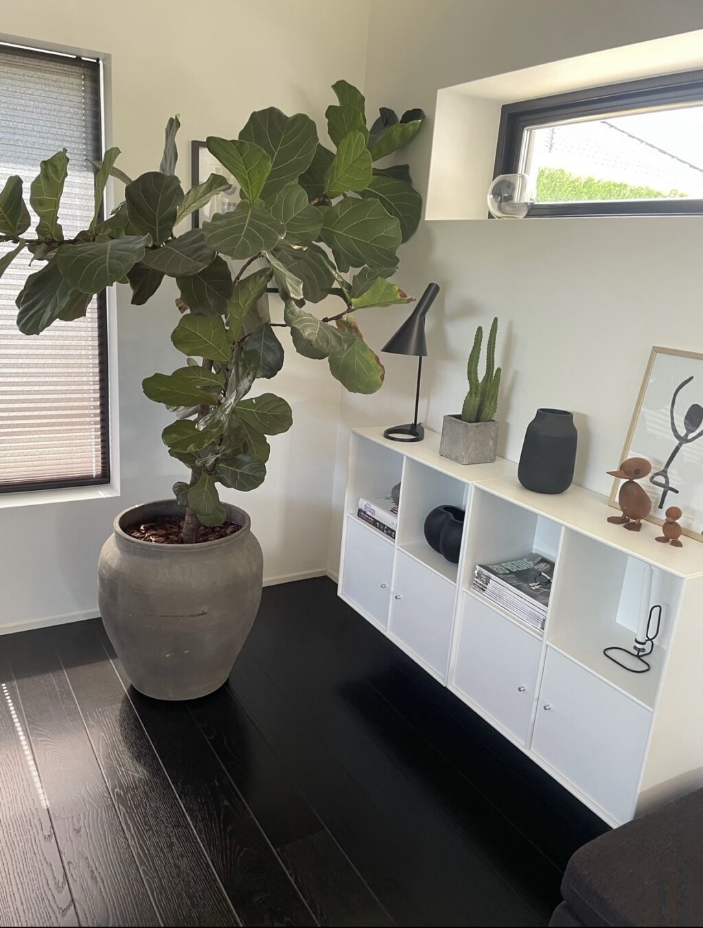- Trægulv (sortbejdset egeplanker)